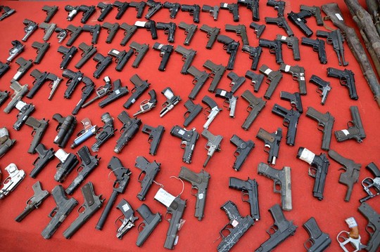 Súng bị tịch thu ở TP Hàm Đan, tỉnh Hà Bắc - Trung Quốc. Ảnh: CCTV
