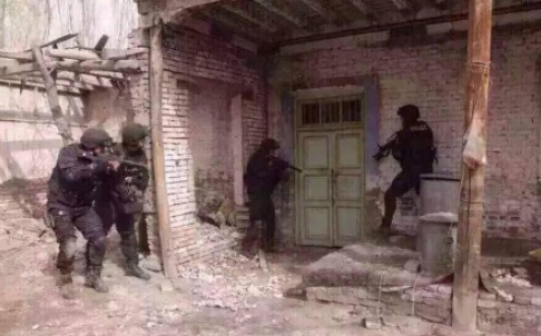 Cảnh sát Tân Cương trong một lần truy bắt "khủng bố". Ảnh: SCMP