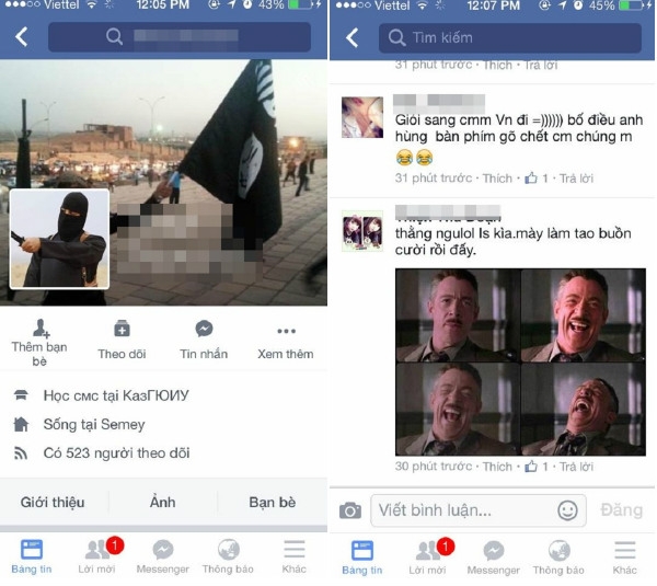 Những b́nh luận chửi bới xuất hiện dày đặc trên Facebook được cho là của thành viên IS