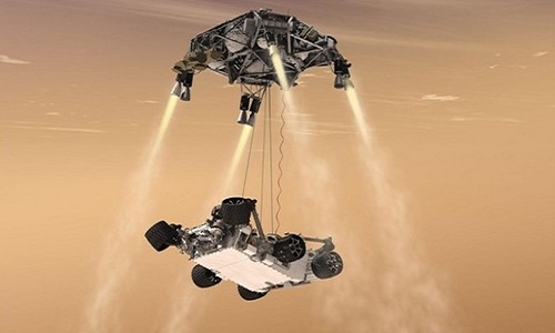 Ngày 5/8/2012, sau khi thâm nhập vào bầu khí quyển sao Hỏa, thiết bị gồm 4 động cơ được kích hoạt và từ từ đẩy Curiosity tiếp đất từ độ cao 20 m bằng dây cáp.
