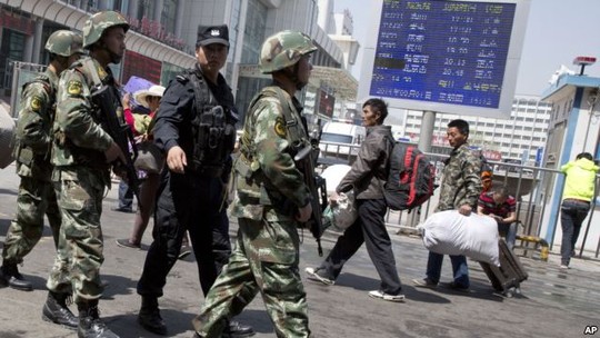 Lực lượng chức năng của Trung Quốc luôn túc trực ở Tân Cương. Ảnh: AP