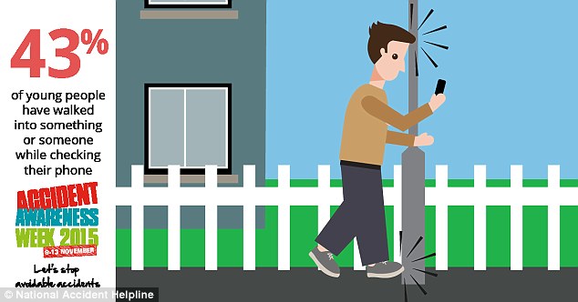 Đồng thời, 27% từng bị hụt chân ngã khỏi vỉa hè khi đang mải nói chuyện với bạn, và một tỉ lệ tương tự đâm sầm vào cửa kính. Khoảng 18% bị mắc kẹt gót giày và khe gạch lát đường và 15% bị trượt ngã ở thang cuốn.