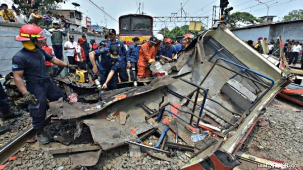 Old  Default Indonesia: Kinh hoàng cảnh xe lửa nội đô đâm xe buýt