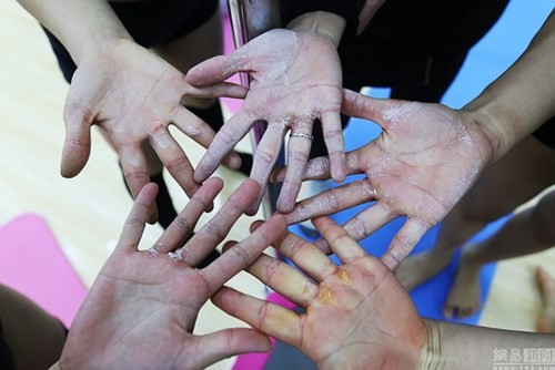 Đôi tay của các thiếu nữ chai sần sau những bài tập múa cột khó nhằn.