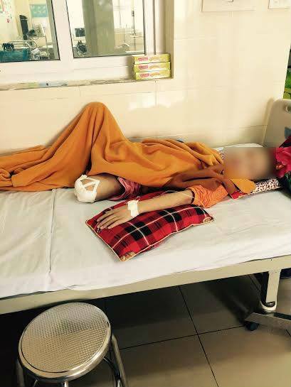 Kết quả cháu bị ung thư xương giai đoạn 2, xương hoại tử rất nhanh nên phải cắt bỏ chân. Đứa trẻ 3 tuổi quá đau đớn chỉ còn biết khóc đòi mẹ xoa bóp vết khâu cắt chân.