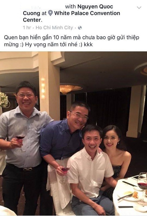 Một người bạn của doanh nhân Cường Đô La đã đăng bức ảnh có mặt Hạ Vi và người cũ của Hồ Ngọc Hà , kèm theo lời chúc đầy ẩn ý: “Quen bạn hiền gần 10 năm mà chưa bao giờ gửi thiệp mừng. Hy vọng năm tới nhé”.
