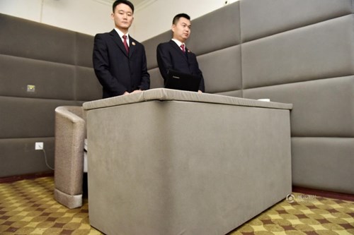 Bàn ghế trong phòng thẩm vấn cũng được bọc bông.