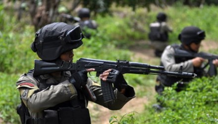 Lực lượng chống khủng bố Indonesia trong đợt truy quét nghi phạm khủng bố tại Poso, Trung Sulawesi hôm 20/8. Ảnh: Tempo.