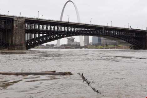 Sông Mississippi trong cơn lũ được ghi nhận tại tại St Louis, bang Missouri ngày 31-12-2015, lưu lượng nước hiện tại là 800,000 m3/giây