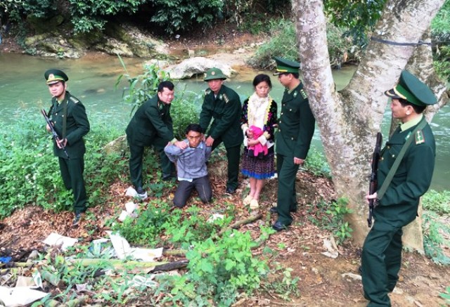 Lực lượng biên phòng bắt giữ Vàng A Tỉnh và giải cứu bé Vàng Thị Đ ngay tại biên giới. Ảnh BĐBP cung cấp.