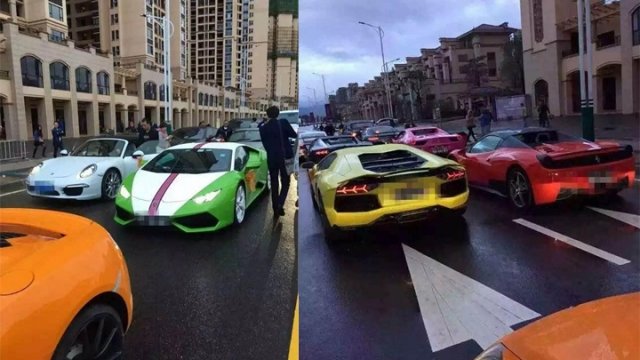 Theo báo chí Trung Quốc, đám cưới đặc biệt này diễn ra hôm 10/1 vừa qua ở Tam Hương (Quảng Đông). Đoàn đón dâu gồm mấy chục chiếc siêu xe toàn Roll Royce, Lambroghini, Benley, Ferrari, Porches… mang biển số Trung Quốc đại lục và Hong Kong.