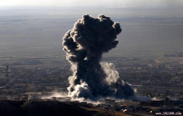 Một đòn không kích của liên minh quốc tế ở thị trấn Sinjar, tỉnh Mosul, miền bắc Iraq vào tháng 11/2015.