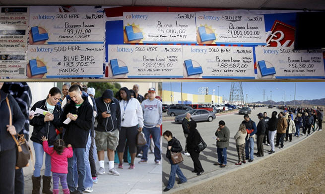 Tại một cửa hàng bán vé ở hạt San Bernardino, bang California, hàng trăm người rồng rắn xếp hàng để thử vận may.