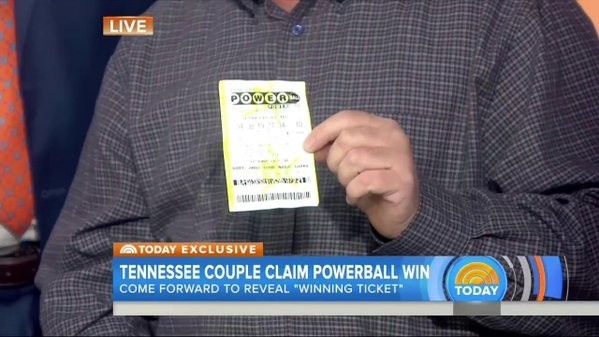 Nghe lời luật sư, cặp vợ chồng Lisa và John Robinson ở Munford, Tennessee đã xuất hiện trên kênh truyền hình TODAY và cùng luật sư để tuyên bố họ sở hữu một trong ba tấm vé xổ số Powerball trúng thưởng.