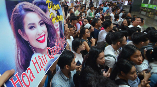 Lúc từ Mỹ về Việt Nam, Phạm Hương được rất nhiều người hâm mộ ra đón và còn được ưu ái gọi là Hoa hậu Quốc dân
