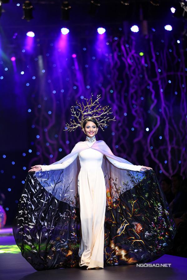 Tối 15/1, Trương Thị May tham gia màn trình diễn 4 chiếc áo dài đấu giá, gây quỹ giúp đỡ người nghèo. Cô diện bộ trang phục mang tên 'Khúc giao mùa', đội mấn độc đáo, mở màn tiết mục này. Mặt trước và sau của trang phục mang họa tiết thiên nhiên rất ấn tượng. Bộ áo dài được bán với giá 350 triệu đồng.