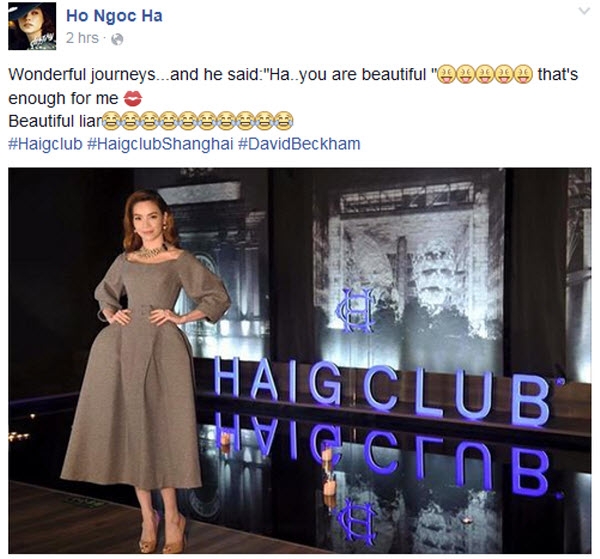 Hồ Ngọc Hà Sung sướng vì được Beckham khen hết lời