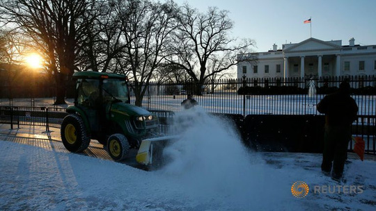 Xe dọn tuyết trên vỉa hè trước Nhà Trắng hôm 21-1. Ảnh: Reuters