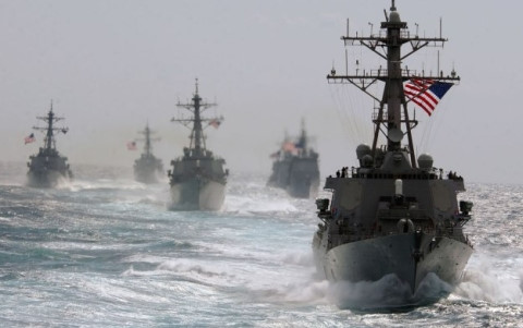 Các tàu trong một hạm đội Hải quân Mỹ. Ảnh AP