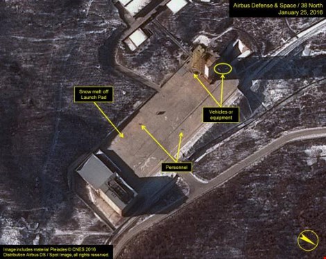 Hình ảnh vệ tinh chụp lại các cơ sở và trang thiết bị tại Trung tâm Phóng vệ tinh Sohae của Triều Tiên vào ngày 25-1-2016. (Ảnh: Reuters)