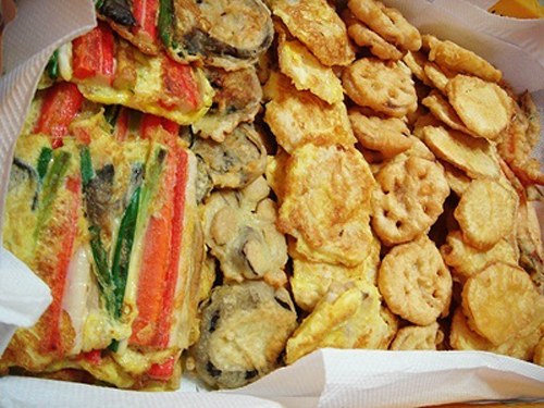 Jeon là loại bánh pancake theo kiểu Hàn Quốc với thịt, bột mì, hải sản và rau. Ngoài ra, bạn có thể thêm những nguyên liệu mà bạn muốn. Sau đó chúng sẽ được trộn lẫn với bột và trứng trước khi cho lên chảo rán.