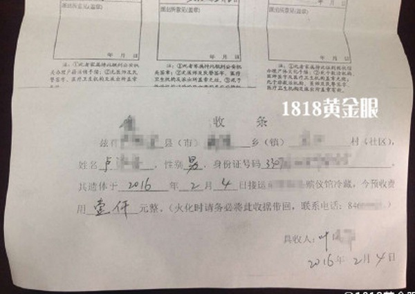 Sau khi bệnh viện gửi giấy chứng tử, vào tối ngày 4/2, cậu bé được đưa đến nhà tang lễ. Em được bọc trong hai lớp quần áo, bên ngoài là một lớp túi nữa sau đó bé trai được đưa vào ngăn đông lạnh để chờ hỏa thiêu.