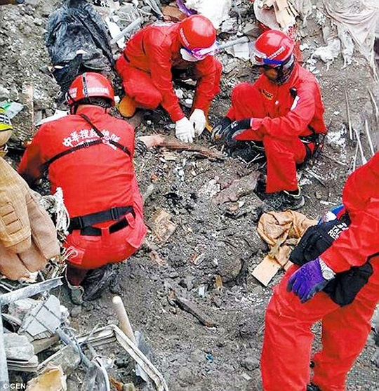 Xúc động hình ảnh thi thể nam nữ ôm nhau sau vụ động đất kinh hoàng tại Đài Loan. Ảnh Báo Người lao động.