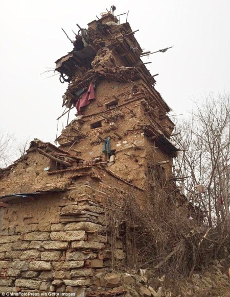 Theo đó, ngôi nhà 7 tầng nói trên được một lão nông 55 tuổi sống tại tỉnh Sơn Đông, Trung Quốc tên Hu Guangzhou xây dựng hoàn toàn bằng đất đá và gỗ trong suốt 8 năm.