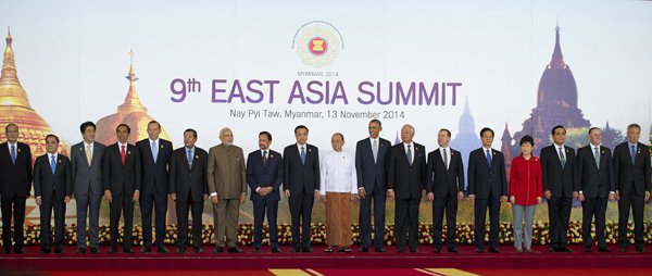 Tổng Thống Obama chụp hình với lãnh đạo ASEAN và một số đối tác khu vực tại hội nghị thượng đỉnh ở Miến Điện hồi Tháng Mười Một, 2014. (Hình: Ye Aung Thu/AFP/Getty Images)