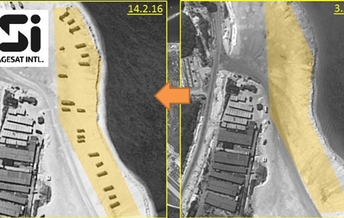 Ảnh chụp một bãi biển trên đảo Phú Lâm trong hai ngày 14/2 và 3/2. Ảnh: ISI