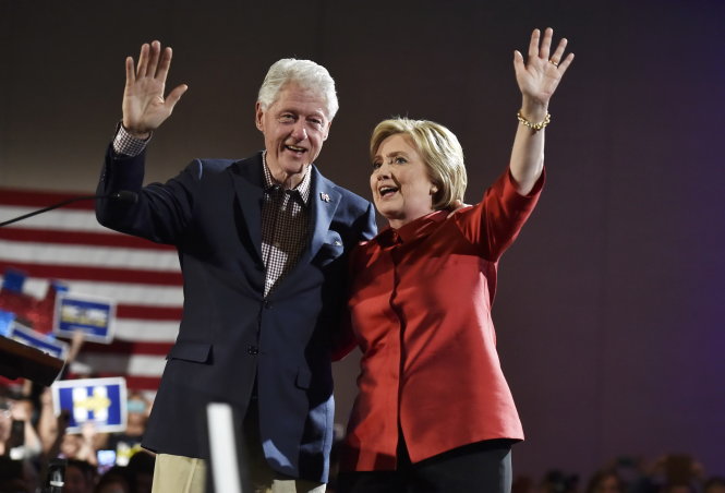 Vợ chồng ông bà Clinton ăn mừng chiến thắng ở Las Vegas, Nevada - Ảnh: Reuters