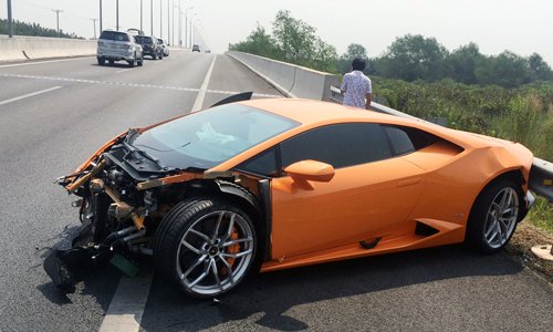 Sáng 3/3/2016, "siêu bò" Huracan màu cam khi qua trạm thu phí Long Phước (quận 9, TP HCM) khoảng 4 km bất ngờ tông dải phân cách, rồi đâm vào lan can lề đường. Cú tông mạnh khiến siêu xe bị nát phần đầu và không ảnh hưởng đến phần động cơ đặt sau. Rất may không có người bị thương.