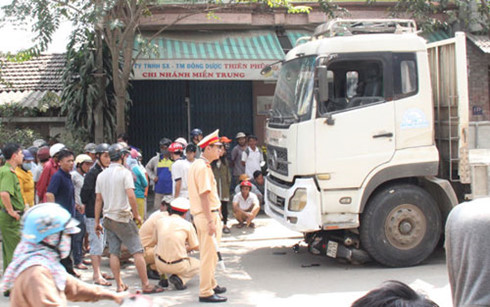 Tài xế xe taxi Hà Minh Vương (28 tuổi, xã Tịnh Phong, huyện Sơn Tịnh) cho biết gặp đèn đỏ, anh dừng lại thì thấy chiếc xe tải vẫn lao tới ôm cua và tông thẳng vào xe máy. “Tôi thấy cháu bé lồm cồm bò ra khỏi gầm xe mình mà không có thương tích gì, mừng ghê luôn”, anh Hiền nói.