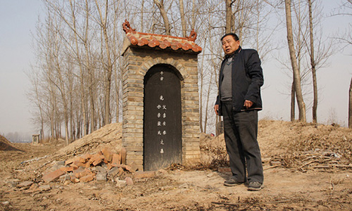 Ông Li Fucai đứng cạnh ngôi mộ từng chôn cất thi thể cha và mẹ ông. Ảnh: The Telegraph