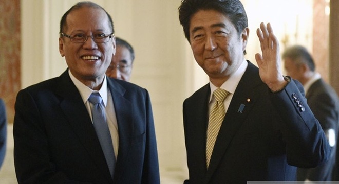 Tổng thống Philippines Benigno Aquino và Thủ tướng Nhật Bản Shinzo Abe. Ảnh: AP