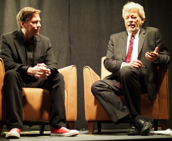 Robert Lazar (trái) trả lời phỏng vấn tại Hội nghị UFO Quốc tế 2015.