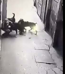 Đàn chó lao vào cắn một người đàn ông được cho là chủ (Ảnh cắt từ clip).