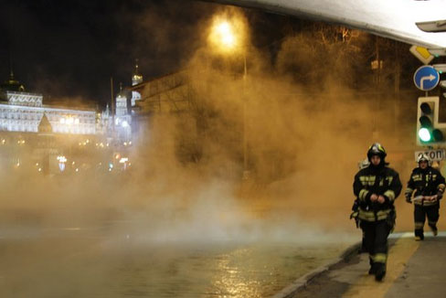 Thực tế là, một đường ống nước nóng bị vỡ ở đường Sofiyskaya vào tối 17/3 khiến nước nóng tràn ra đường và hơi nước bốc lên trùm kín các khu vực lân cận.