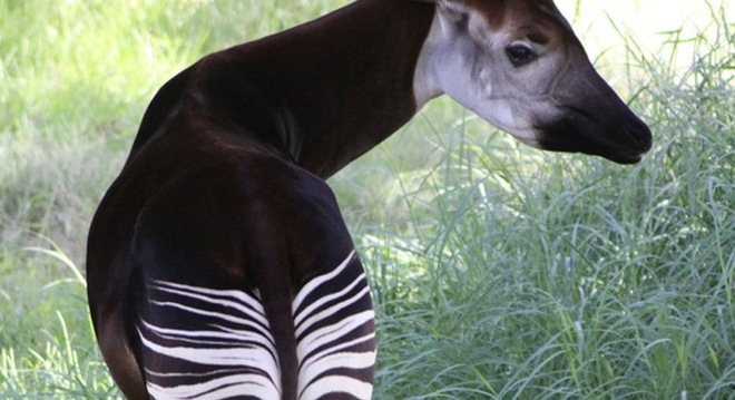Nhìn hươu đùi vằn trông giống nhiều loài động vật khác nhau, rất khó xác định được cụ thể thuộc loài động vật nào. Nhờ những đặc điểm khác thường mà hươu đùi vằn dễ trà trộn với môi trường xung quanh, ẩn mình trước con mồi để tấn công bất ngờ. Hươu đùi vằn to bằng con ngựa, có cổ dài như hươu cao cổ và được coi là biểu tượng quốc gia của CH Congo.