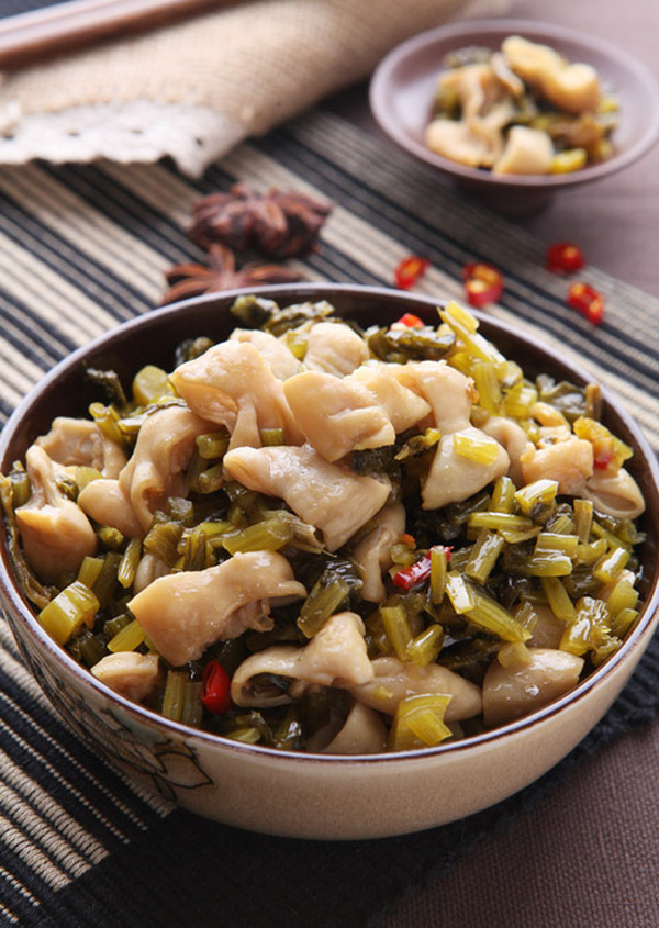 Dưa chua được xào cùng lòng non là món ăn dân dã của người Việt nhưng chưa khi nào trở nên nhàm chán trong mâm cơm gia đình. Đây là món ăn hài hòa về hương vị, tạo sự ngon miệng khi ăn cùng cơm nóng nữa.