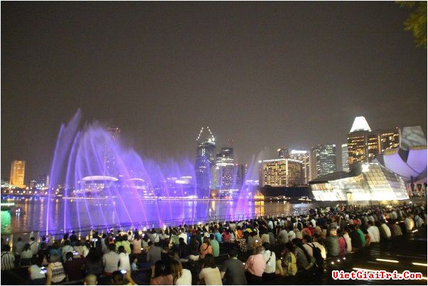 Có thể nói cảnh đẹp ban đêm như một màn hình tivi màu khổng lồ của Singapore chiếm hết 70% vẻ đẹp của đất nước này. Đi thuyền trên vịnh Marina, bạn có thể nhìn bao quát cảnh đẹp quyến rũ hai bên bờ với những tòa nhà hùng vĩ, được trang hoàng bởi hàng ngàn ánh đèn màu. Nhạc nước tại Singapore được biểu diễn trên vịnh Marina hay trên bãi biển Sentosa cũng là show diễn nổi tiếng khắp thế giới.