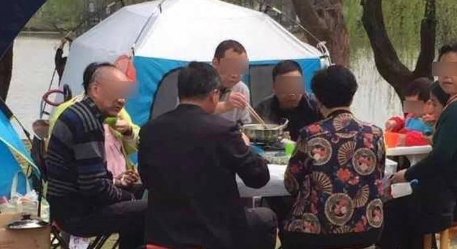 Bức ảnh cả gia đình đang ung dung cắm trại, ăn lẩu ngay trong khuôn viên trường đại học Triết Giang sau khi được đăng tải hôm 20/3 đã trở thành chủ đề bàn luận nóng trên mạng xã hội Trung Quốc.