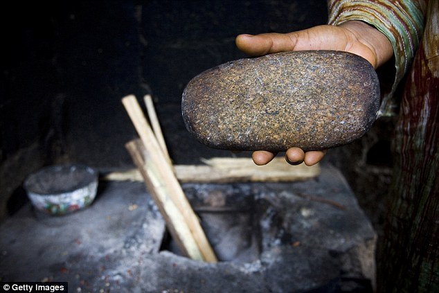 Vật dụng để ủi ngực thường là một hòn đá được nung nóng.