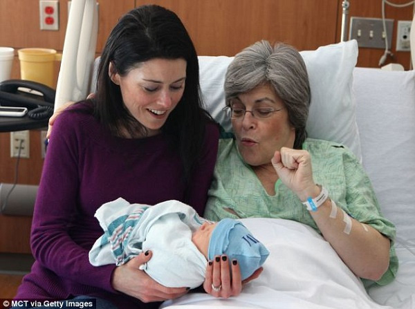 Phôi thai tạo ra từ trứng và tinh trùng của Sara và con rể Bill được cấy vào tử cung của bà. Quá trình mang thai và sinh cháu trai đã diễn ra một cách thuận lợi.