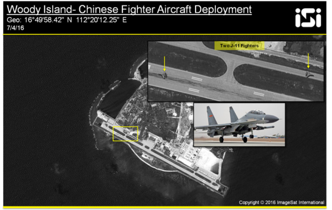 Ảnh vệ tinh của ISI cho thấy Bắc Kinh đã điều 2 chiếc máy bay J-11 lên đảo Phú Lâm (chủ quyền Việt Nam, Trung Quốc chiếm đóng trái phép).