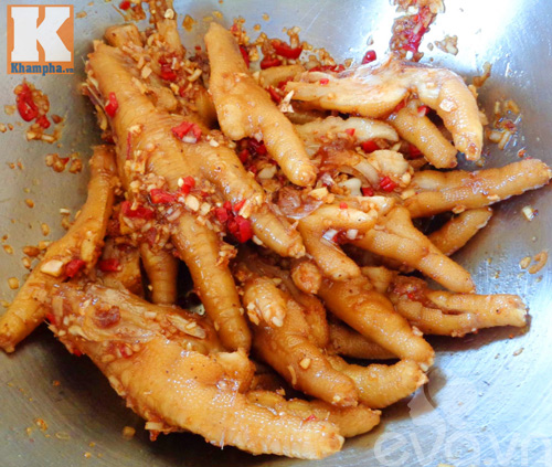 Bước 2: Cho chân gà đã luộc cùng với các gia vị phía trên vào 1 cái âu trộn đều, để ít nhất 2 tiếng hay qua đêm.