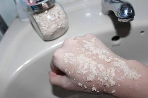 - Sau khi tắm sạch với sữa tắm, bạn thoa đều hỗn hợp trên lên da kết hợp massage nhẹ nhàng, tập trung ở những phần da thô ráp, sần sùi hơn. Sau 10 phút thì tắm lại với nước sạch và lau khô người.