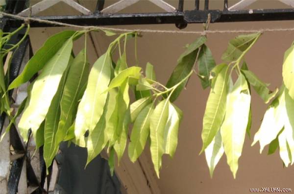 Ngoài ra, bạn có thể sử dụng lâu dài bằng cách phơi lá xoài non trong bóng râm cho đến khi khô, đem nghiền thành bột dùng vào buổi sáng và chiều, mỗi lần nửa thìa cà phê bột lá xoài pha loãng với ly nước đầy.