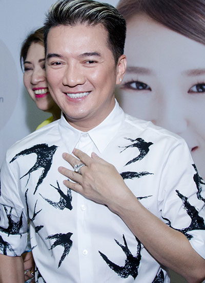 Nam ca sĩ gây chú ý trong một sự kiện tại TP HCM khi đeo chiếc nhẫn đính viên kim cương cỡ lớn.