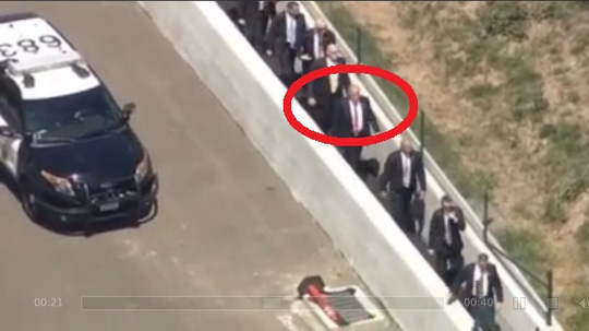 Ông Trump được hộ tống đi vào khách sạn bằng cửa sau. Ảnh: Reuters